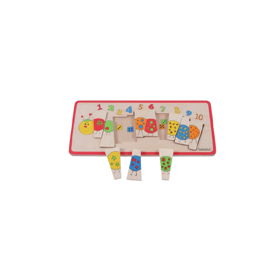 數字與顏色的認識,數量對應並培養手眼協調能力。