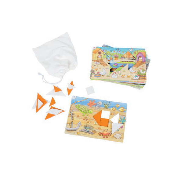 認知幾何形狀及了解圖形之間的關係,透過圖形的拚合來訓練精細動作和專注力。