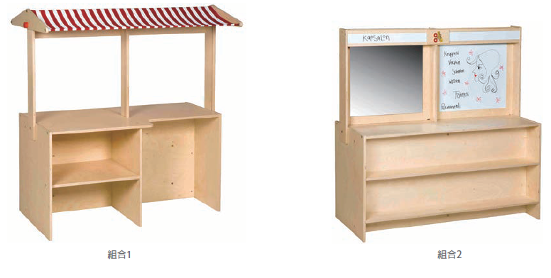 可以從市場攤位變成一個美髮中心,從機票販售處變成旅行社,這些變化只需要幾分鐘,多功能的設計非常適合活動室空間緊湊又希望展開多種遊戲的幼教機構。