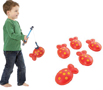 5條含有磁扣的空心魚。釣魚挑戰孩子的專注力 平衡感 和手眼協調能力,也可用於想像力和角色扮演。可搭配*2175 魚竿*一起遊戲。