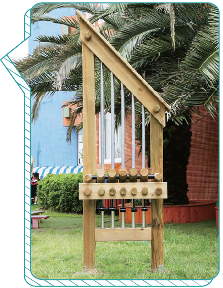 由實木和金屬鋁管製成的豎琴,含有5個音階可供演奏,可滿足幼兒對音樂探索的基本需求。