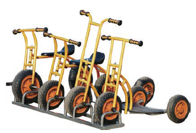 TT童車通通可以整齊地放在大停車架上。架上最多可以放置4輛車,支架由螺絲固定在地上確保穩定性。